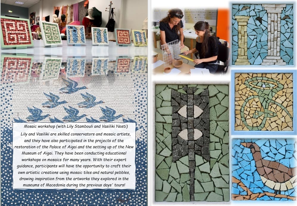 Day 5 – Pella. Visit to site and museum en route visit to Agios Athanasios Macedonian tomb. Return to Thessaloniki. In the afternoon mosaic presentation and workshop in collaboration with mosaic artists. Dinner and overnight.